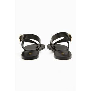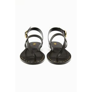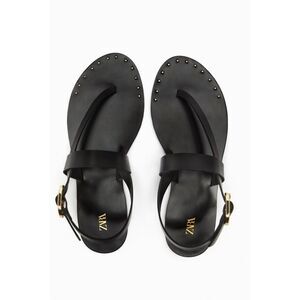 Black Zara Leather Gold Tone Studded Ankle Buckle Closure Flat Sandals