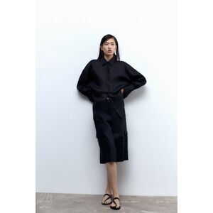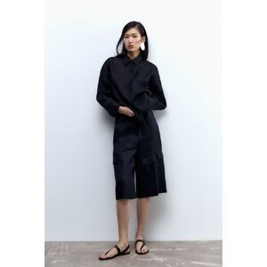 Black Zara Leather Gold Tone Studded Ankle Buckle Closure Flat Sandals (NWT)