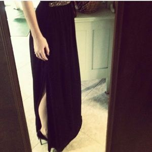 @edventuregirl I am almost 5'8 and wore it with high heels and it was still just slightly long so it would probably be perfect. Plus the slit up the side makes it nice for walking in even with the length. I will measure it as soon as i get home!