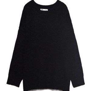 Black Zara Oversized Chunky Knit Crew Neck Long Sleeve Sweater (NWT)