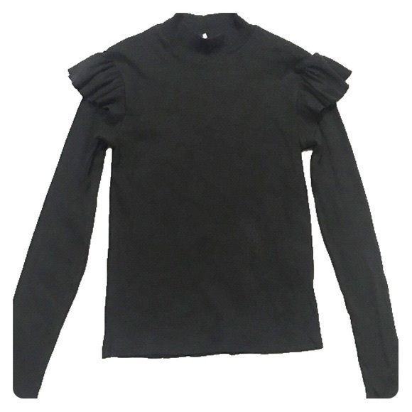 Black Zara Ribbed Ruffle Top