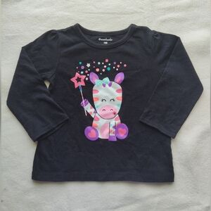 Colorful zebra graphic on black long sleeved shirt and plain black sweat pants. Size 18 months. Selling in imperfect used condition. Some pilling, largely just needs another go with a lint roller for the fuzz on it. Pet friendly, smoke free home.