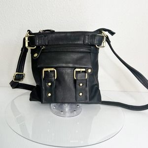 Black Zip Top Adjustable Crossbody Strap Shoulder Bag