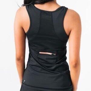 Warm weather running has met its perfect top. We started with lightweight, breathable fabric that wicks moisture quickly to where it can evaporate. Then we added mesh ventilation exactly where you need it most. We also included a few thoughtful surprises, like a key pocket that won't bounce around, and structured seams (anti-chafe, of course) for a figure-skimming shape that won't cling.