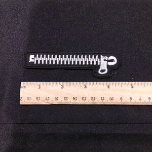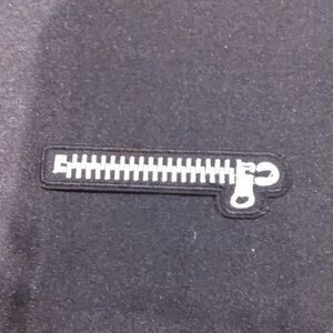 Stylish black patch with a white zipper design. Perfect for adding a unique touch to clothing or accessories.
