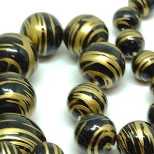 Black and Antique Gold Pearl Like Bead Necklace Knotted and Graduated