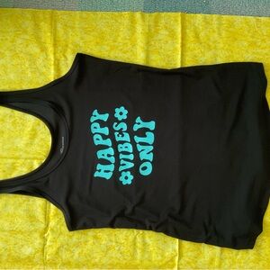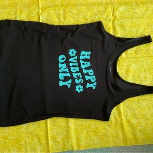 Enjoy comfort and style with this set of black and aqua tank tops. Perfect for casual outings. Black is a Large and Aqua is a Small. Both have never been used. The fabrics are nice and soft. Wear them alone or together. Summer fun.