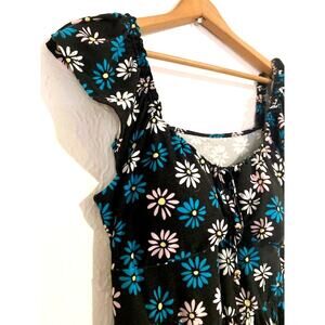 Black and Blue FLORAL High-Low Dress - Flutter Sleeve Dress