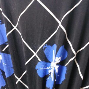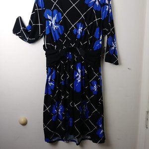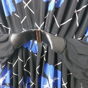 The bottom half comes down below the knee, and the dress itself has a lot of stretch, making it extremely comfortable. The faux belt hides all manner of sins and gives even the boxiest figure an hourglass shape.