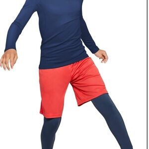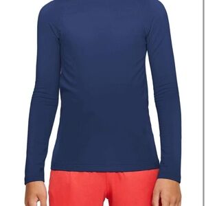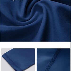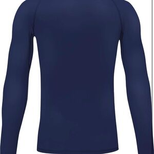 Set of black and blue long sleeve compression shirts. Perfect for workouts.