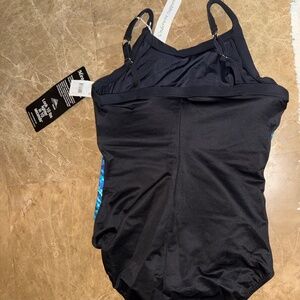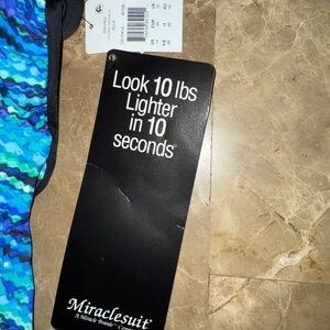 Brand new, never tried on. Liner still intact. MiracleSuit "Look 10 lbs lighter in 10 seconds". Black back. Underwire Support. Adjustable straps. High neck