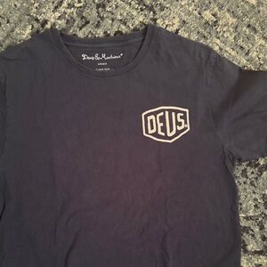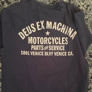 Upgrade your wardrobe with these stylish short sleeve tees. Featuring a classic black and blue design, these shirts offer comfort and a modern look for any casual occasion. From Venice brand Deus Ex Machina a motorcycle brand. Great conditon. No trades.