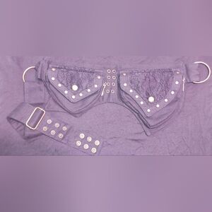 Ladies, elevate your style with this sleek black canvas belt bag with zipper and button closure is a perfect blend of edgy and elegant! Featuring striking brass-like buttons and accents, including a sturdy buckle, this bag adds a touch of luxury to any outfit. The structured design includes two front pockets, one with delicate black lace overlay and round brass-like studs plus two additional back pockets, offering ample space for your essentials. Adjustable for a customized fit, this chic accessory is ideal for hands-free convenience, whether you're dressing up a maxi dress or rocking leather pants.