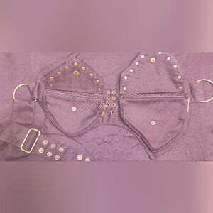Black and Brass-like Belt Bag Zipper and Button with Decorative Metal Ac…