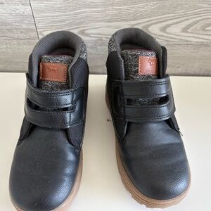 Black and Brown Ankle Boots with Fabric Stylish Collar and Velcro Closure
