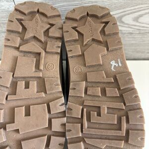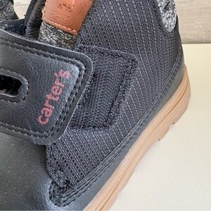 These stylish ankle boots feature a sleek black and brown design, complemented by a cozy fuzzy collar for added warmth. The convenient velcro closure ensures easy wear, while the durable rubber sole provides excellent traction for everyday adventures.