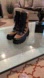 Stylish black and brown lace-up boots with rugged soles. Perfect for outdoor adventures.