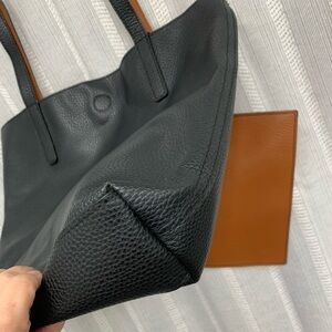 Black and Brown Tote with Attached Mini Bag Faux Leather EUC