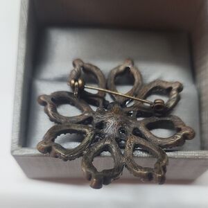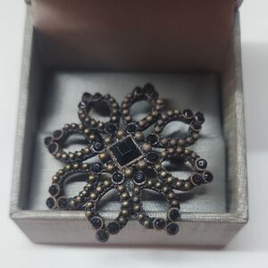Black and Brown Vintage Brooch with Intricate Snowflake Design