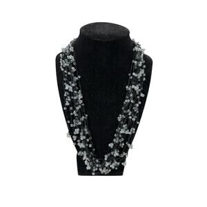 Black and Clear Crystal Crotched Stretch Necklace. Beautiful, Versatile