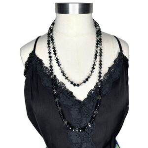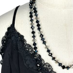 Black and Clear Crystal Endless Faceted Beaded Necklace 27" Fashion Jewelry