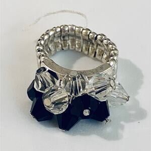 Black and clear Glass Bead Stretch Ring