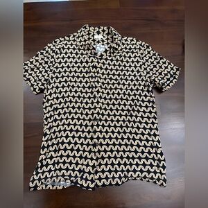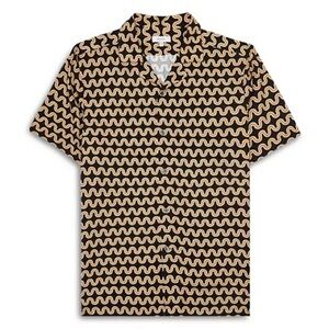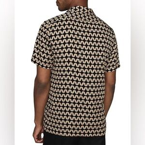 Stylish men's shirt featuring a black and cream wave pattern. Perfect for casual outings or a night out. Elevate your wardrobe with this unique design.