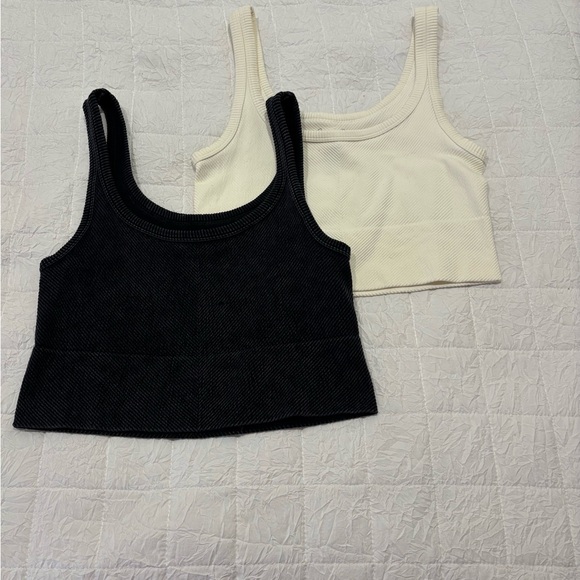 Stylish and versatile tank tops in black and cream. Perfect for layering or wearing alone. Enhance your wardrobe with these essential pieces.