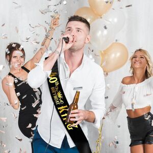 Celebrate in style with this elegant black and gold 'Birthday King' sash. Perfect for making the birthday person feel special.