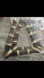 Gold And Black Bamboo Hoop Earrings / Door Knockers Textured Metal Enamel Style Trendy Fashion Jewelry