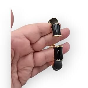A timeless vintage bangle featuring sleek black enamel and gold-tone accents in a bamboo-inspired design. This elegant hinged bracelet captures the sophisticated style of late 1980s to early 1990s fashion — bold, refined, and effortlessly chic.