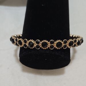 Shiny black beaded gold tone bangle bracelet 8.5" Inventory box 11