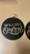 Round black earrings with 'Blessed Queen' in gold lettering. Stylish and bold.