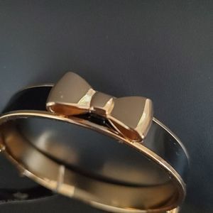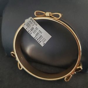 Elegant bracelet with a gold bow accent. Sleek black band. Perfect for any occasion. Tag has been removed but never wore