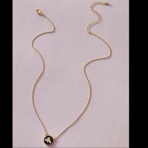 Gold and Black Bumblebee Necklace for sale! This necklace is so pretty. It is new and is from my boutique! It has an adjustable gold chain that is about 19 1/2 inches long. You can adjust it to your desired length. The smaller pendant is black with a gold bee in the middle. Such a beautiful necklace to add to your jewelry collection!