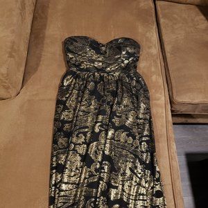 Classy floor length dress, measures 52 inches from the top of the bust to the bottom. Worn once, made a great minimalist prom dress.