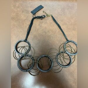Black and Gold Hoop Necklace with earrings-Contemporary, statement piece