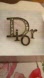 Chic Dior brooch featuring a black and gold monogram design. Adds sophistication to any ensemble.