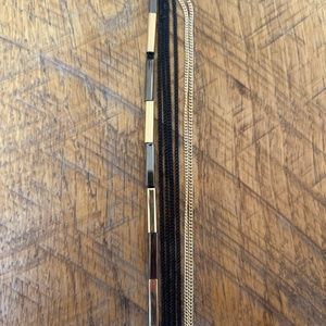 Layered necklace. Has black and gold chains with black and gold beads. Adjustable. 18 inches long.