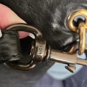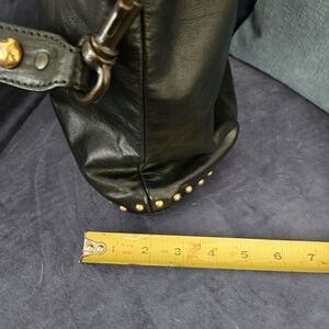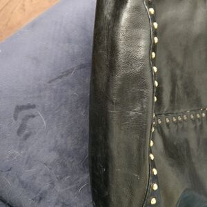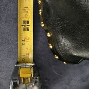 Elegant black leather women's bag with striking gold stud accents. Perfect for adding a touch of luxury to any outfit.