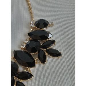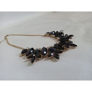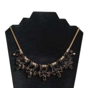 Black and Gold Toned Rhinestone Encrusted Flowers Bib Style Statement Necklace