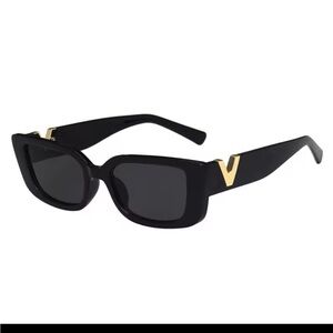 These sleek sunglasses feature a modern black frame with a unique metallic 'V' detail on the sides, adding a touch of luxury to your look. The dark lenses provide excellent sun protection while maintaining a stylish appearance. Perfect for elevating any outfit with a contemporary flair.