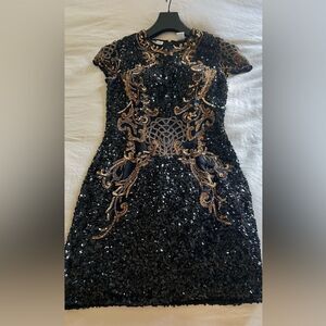 Black and Gold Sequin Dress