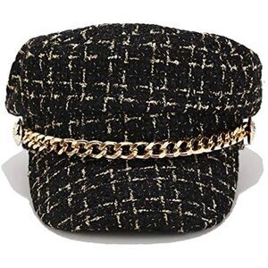 Plaid Tweed Newsboy Baker Boy Hat Captain Sailor Fisherman Hat Peaked Beret with Chain