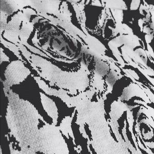 This is a fitted (stretchy) skirt that measures 16 inches from top to bottom (almost an inch longer in the back). It fits like a Medium. The top can be left up (as pictured) to add length or can be folded over to shorten even more. The skirt is made from Polyester and Spandex and is thicker than most knitted material. It is from a clean smoke/ pet free home.