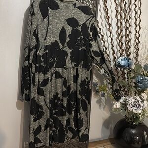 Stylish black and gray floral knit dress. Perfect for any occasion.