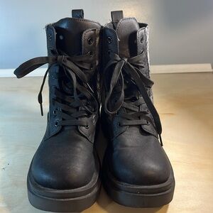 Step out in style with these chic black and gray floral boots. Perfect for adding a touch of elegance to any outfit. these grunge/Goth boots are perfect with a touch of floral flair. These are gently used boots still in excellent condition European size 42, seven 7 1/2 US smoke free household