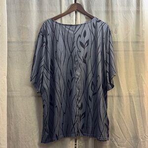 This tunic features a striking abstract pattern in dark blue and a lighter blue, exuding a contemporary vibe. Its boxy, relaxed fit ensures comfort and style, making it a versatile choice for any occasion. The soft fabric enhances its flowing silhouette, perfect for a chic, laid-back look. From Temu. Tag says 5XL……fits like a 3XL. New without tags. Never worn.