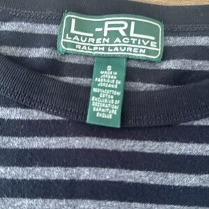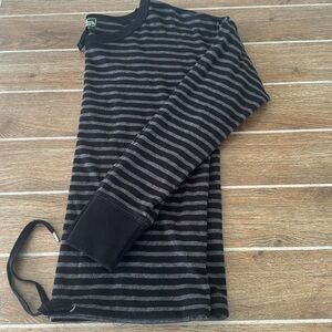 Stylish black and gray striped long sleeve top. Perfect for casual wear.