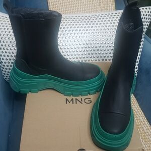 Black and Green Chunky Bottega Like Rubber Women's Boots